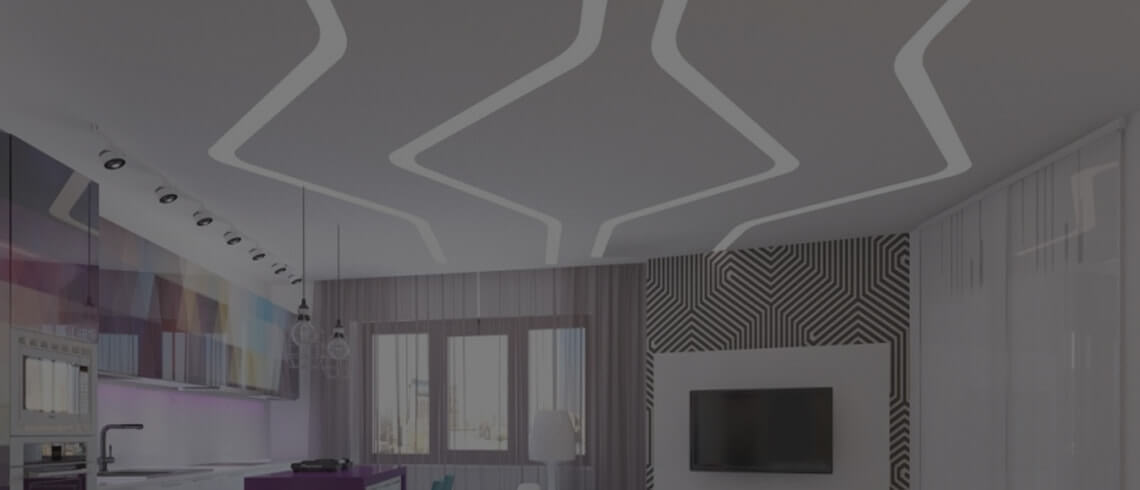Также мы осуществляем монтаж конструкций любой сложности: многоуровневые, парящие, со световыми линиями, с трековыми системами освещения, с бесщелевым и теневым профилем KRAAB и т.д.
